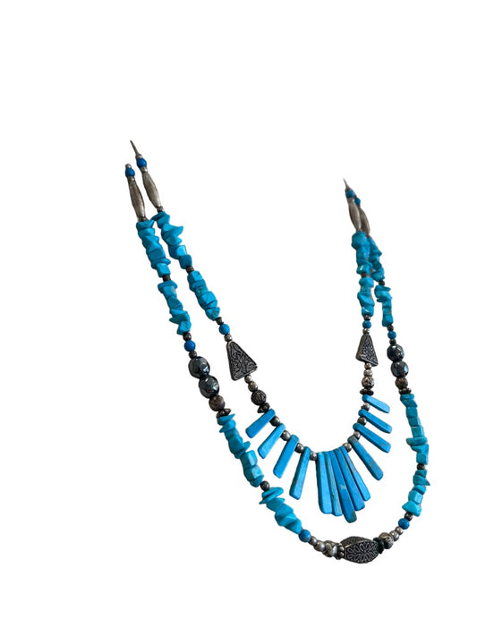 Vintage Silver and Turquoise Double Strand Beaded Necklace
