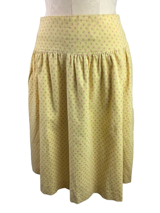 Small Daisy pour Bebe Blond Women's Vintage 1980s Corduroy Yellow Skirt Pockets Knee Length