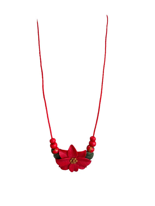 Handmade Polymer Clay Poinsettia Cord Necklace Adustable