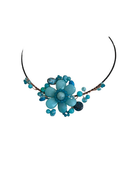 Handmade Copper And Stone Flower Statement Collar Necklace Stunning