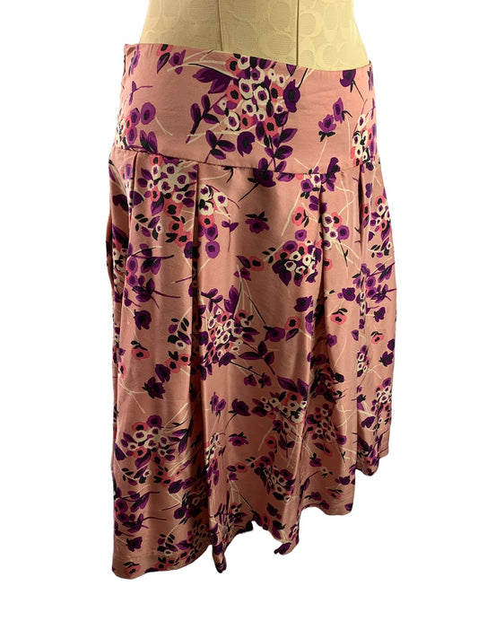10 Express Design Studio Women's Pink Silk Skirt Floral Print Side Zip Lined