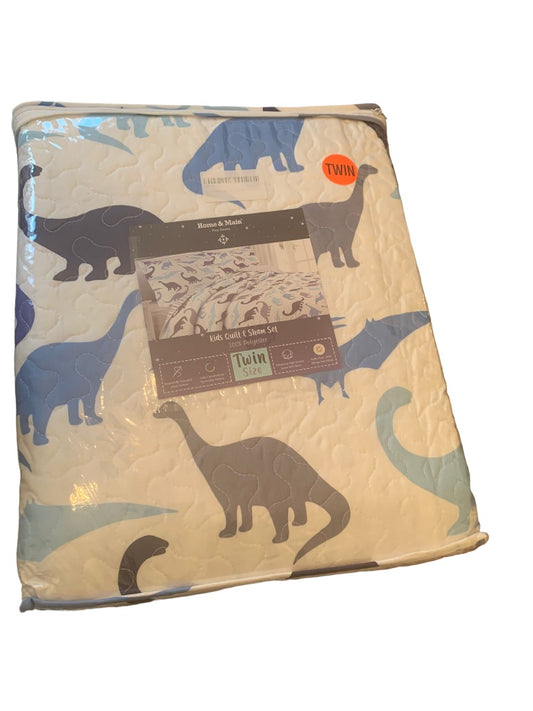 Home & Main Kids Quilt and Sham Set White Blue Dinosaur Pattern Twin Size