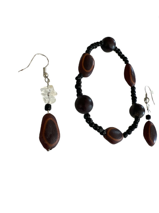 Wood Beaded Stretch Bracelet and Dangle Earrings (2" drop)