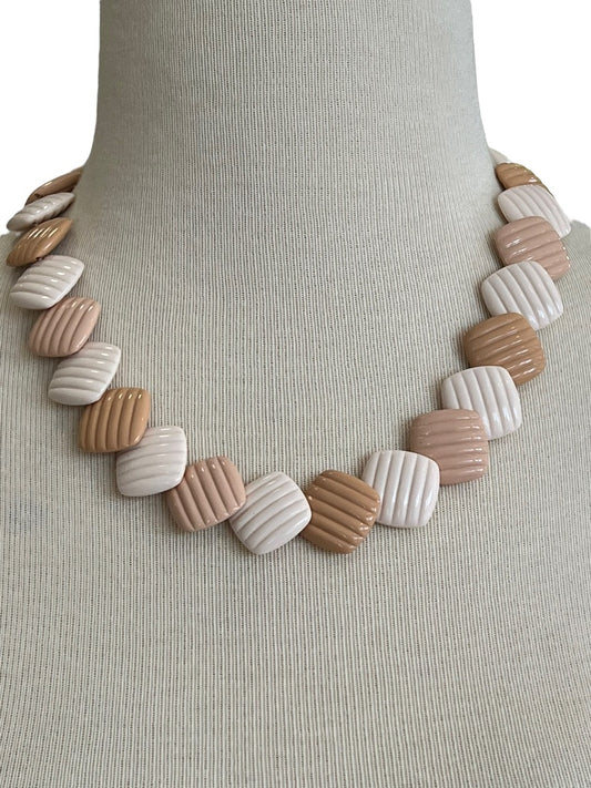 Vintage Square Beaded Overlay Taupe Peach Necklace Church