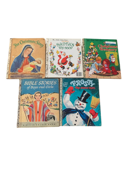 Lot of 5 Vintage A Little Golden Book Christmas Holiday Santa Frosty Bible
