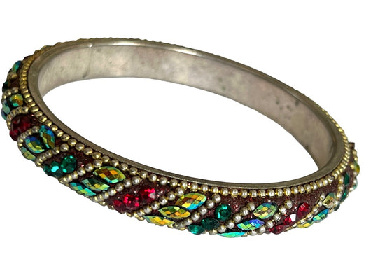 Vintage Multi-Color Rhinestone Indian Style Bangle Bracelet 2.5" Diameter Opening