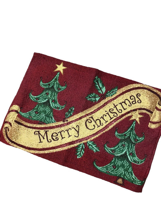 Set of 3 Woven Holiday Christmas Placemats Table Linens Stockings Trees