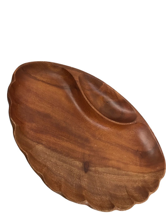 Signed Wooden Chip and Dip Bowl Philippines Shell Shape 13" x 8.5"