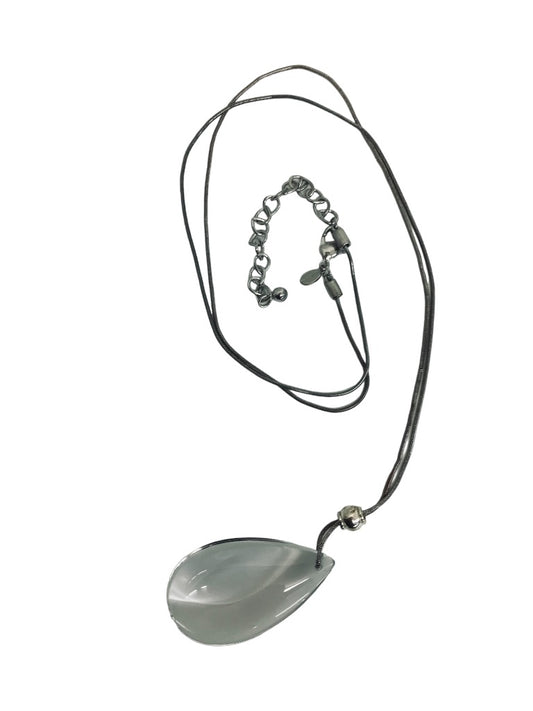 Chico's Silvertone 36-40" Necklace Clear Acrylic Teardrop Pendant 2 1/4"
