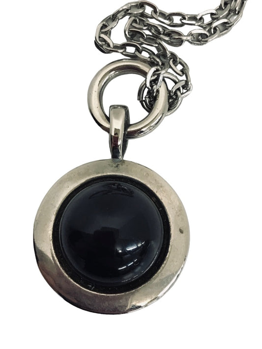 Soho Design Silvertone 32" Necklace Black 2 3/4" Sphere Pendant