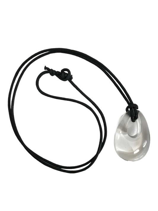 Black Corded 32" Necklace Teardrop Acrylic 2" Pendant Tie Closure