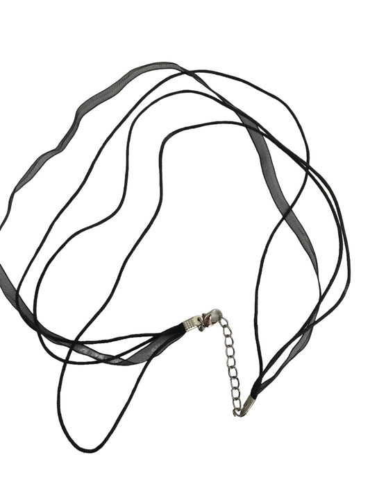 4 Strand Ribbon and Black Cord 18" Necklace Silvertone Clasp