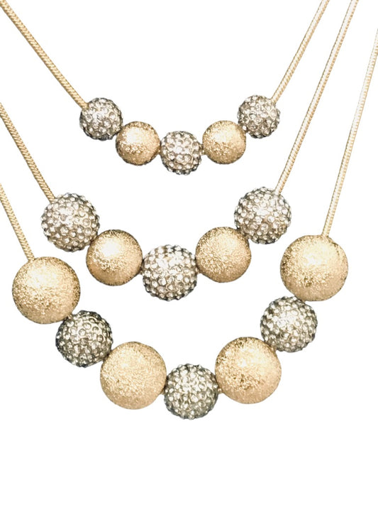 Chico's Silvertone and Goldtone Triple Strand Beaded 19-23" Necklace