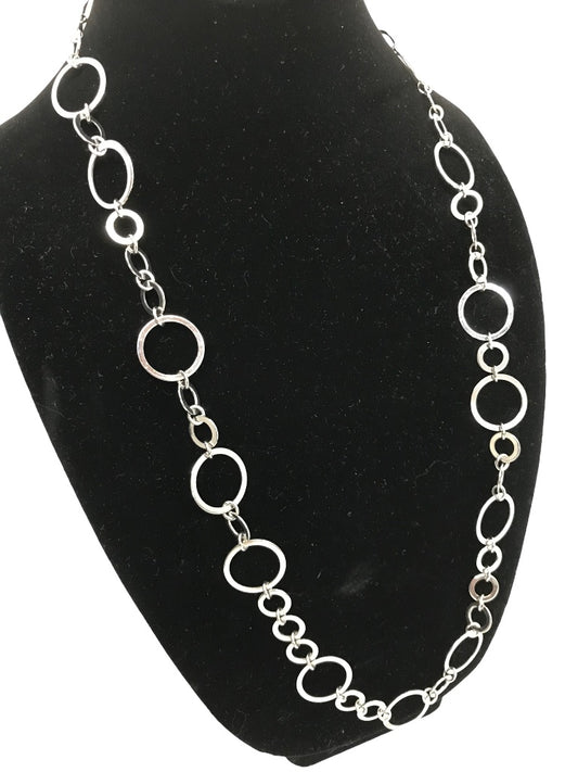 Chico's Silvertone Open Circle Necklace 35-39" Lobster Clasp