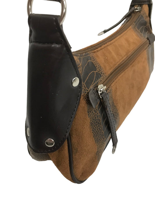 M.C. Brown Shoulder Bag Faux Leather Reptile Print Zip Top