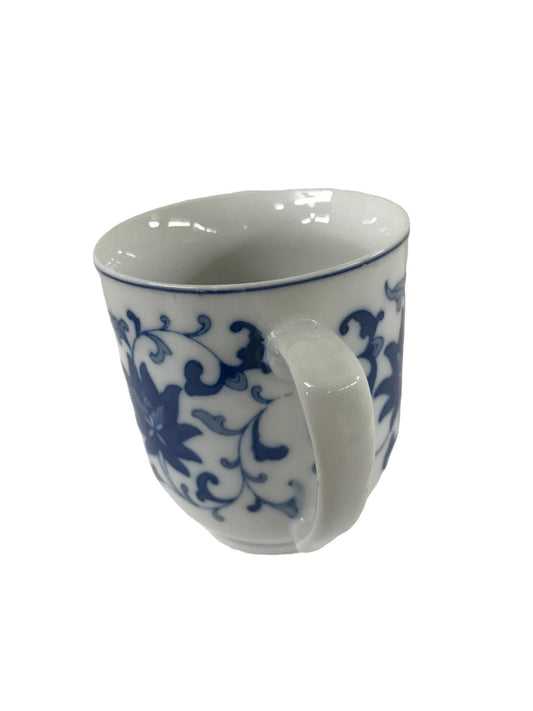Vintage Tea Cup Mug Handled Blue Floral White China 3 3/4"h