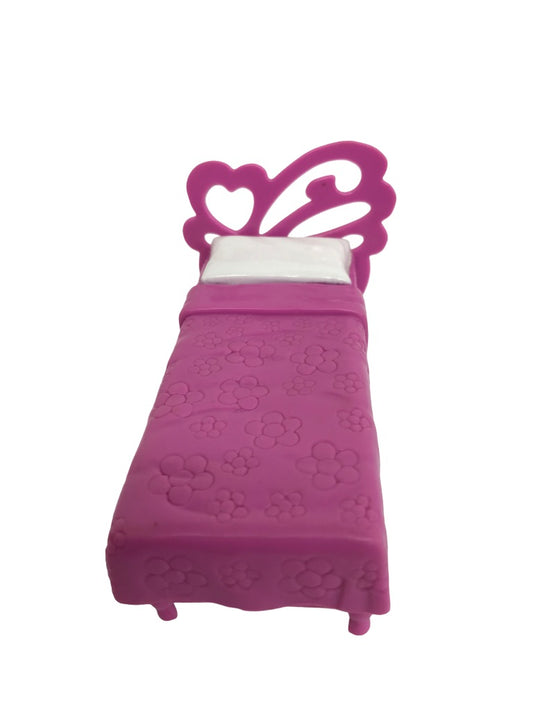 2002 Origin Dollhouse Miniature Plastic Bed Purple Heart Floral 3.5"l x 1.5"w