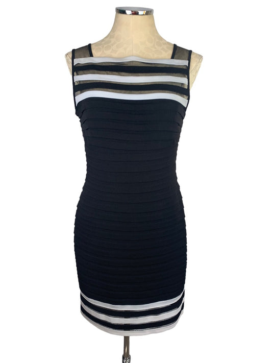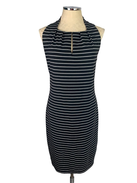 Medium Max Studio Black White Striped Sleeveless Sheath Dress Ribbed Knit