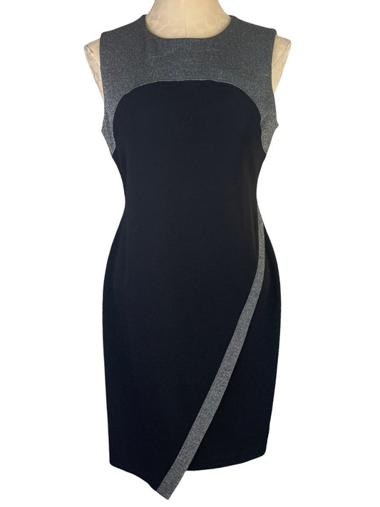 8 Tommy Hilfiger Black Silver Sleeveless Sheath Dress Stretch Fabric Back Zip