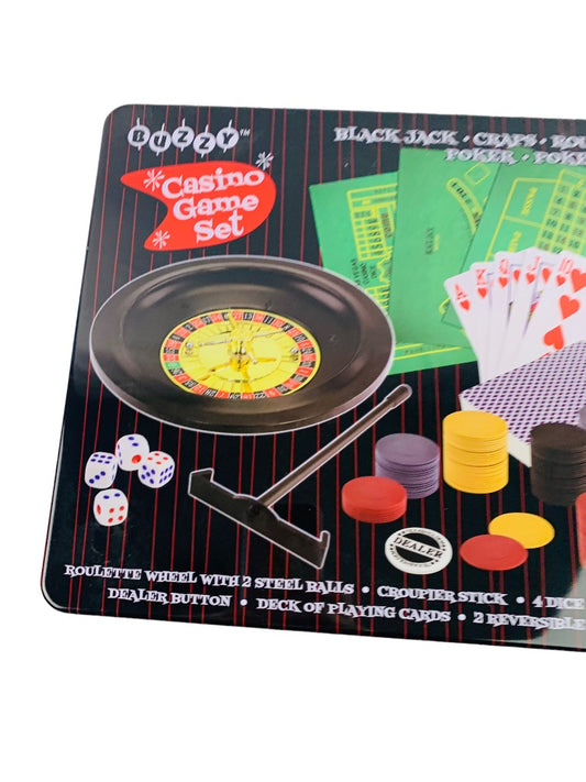 Buzzy Casino Game Set in Tin Black Jack Craps Roulette Poker Dice