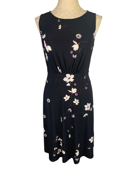 Medium Chaps Women's Floral Print Black Dress Sleeveless Tie Waist Back Zip