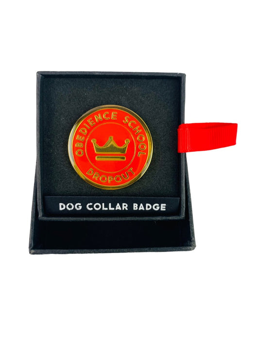 "Obedience School Dropout" 1.25" Dog Collar Badge New Pets Easy Tiger