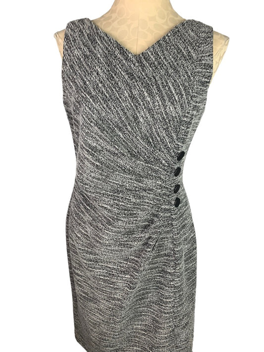 10 DKNY Black White Stretch Tweed Sheat Dress Sleeveless V-Neck Back Zip