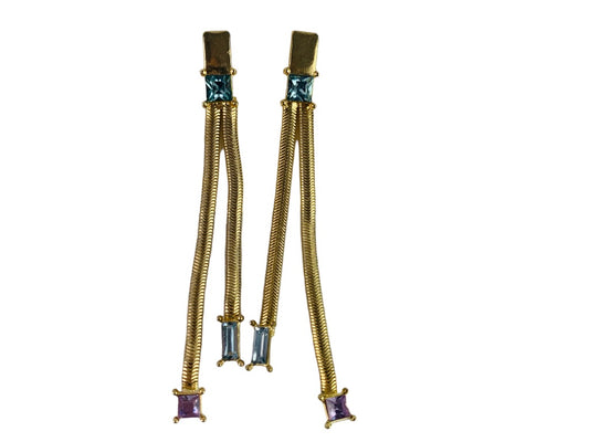 a new day Post Drop Goldtone Pierced Earrings Blue Purple 3" Drop Dangle
