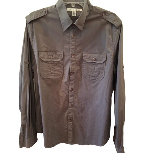Large Kenneth Cole Men's Gray Casual Button Up Shirt Front Pockets