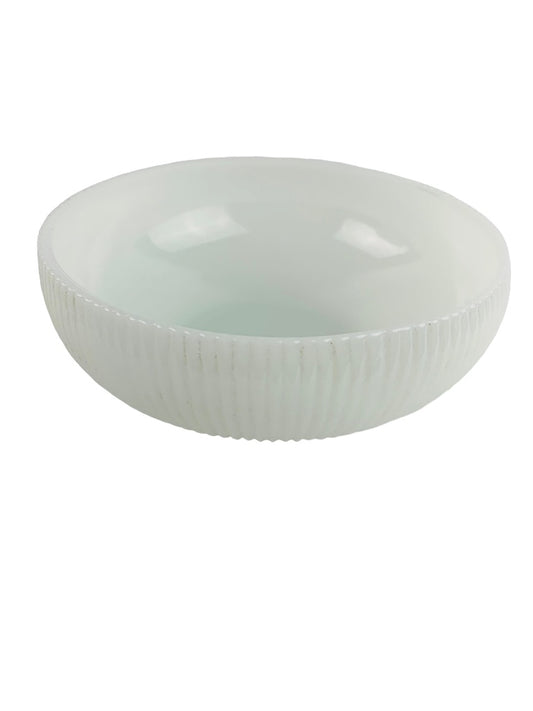 Vintage E.O. Brody Milk Glass Bowl Vertical Lines Cleveland OH 6 1/4"d x 2 1/2"h