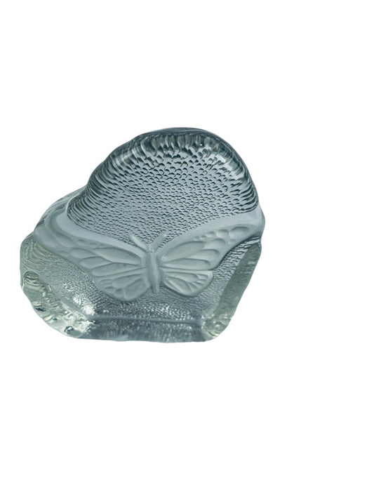 Clear Art Glass Butterfly in Stone Shape Paperweight 3.5" x 3"
