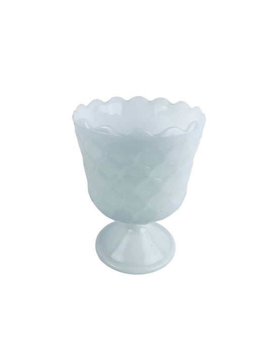 Milk Glass Fruit Pedestal Bowl E.O. Brody Honeycomb Pattern Cleveland OH 6"h x 4.5"d
