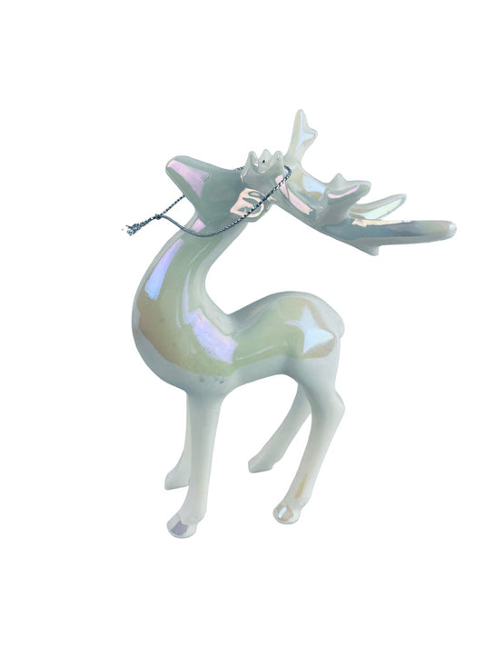 Opalescent Glass Reindeer Ornament White 7"h Ready to Hang Holiday
