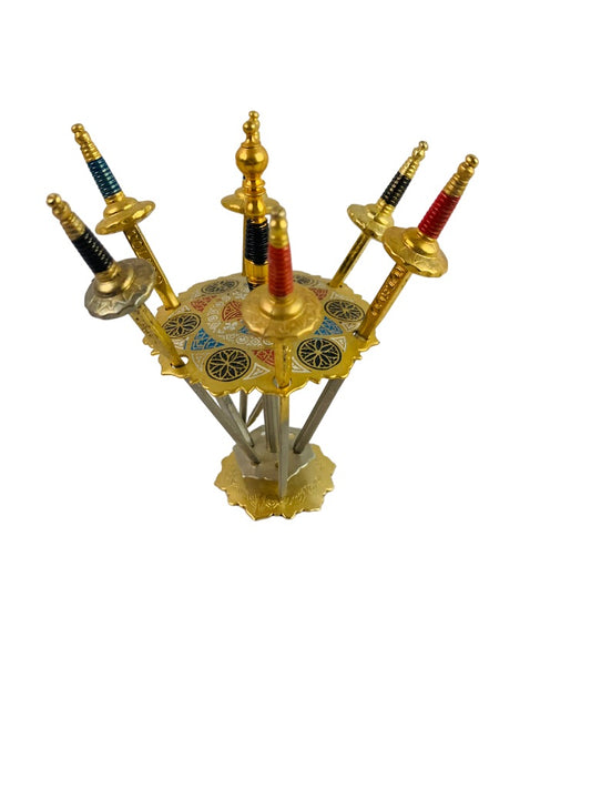 Toledoware Cocktail Swords Damascene Engraved Enamels in Stand