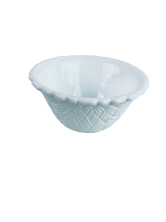 Indiana Glass Milk Glass Dessert Bowl Basketweave Weavetex 4 1/5"d x 2 1/4"h