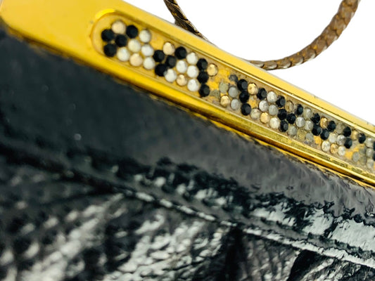 Andre Cellini Vintage 1980s Black Snakeskin Shoulderbag Goldtone Hardware Embellished Hinged