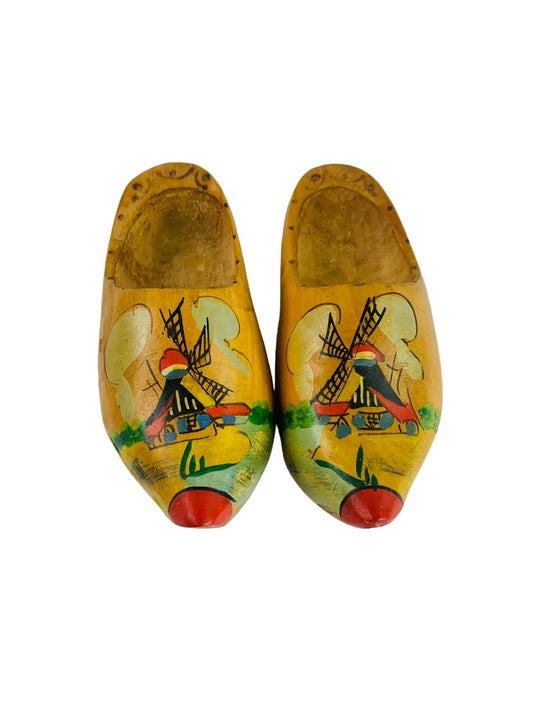Set of 2 Vintage Holland Souvenir Wooden Wall Hanging Clogs Painted Windmill 6.5"