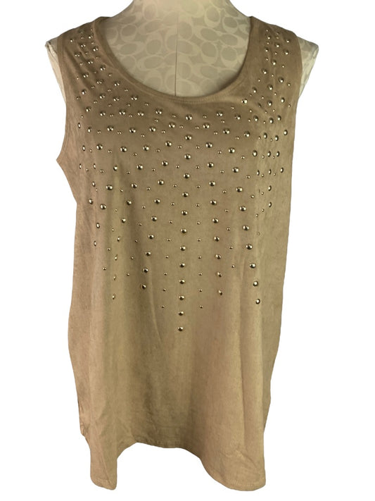 Large Slinky Brand Brown Brushed Microfiber Studded Tank Top Sleeveless