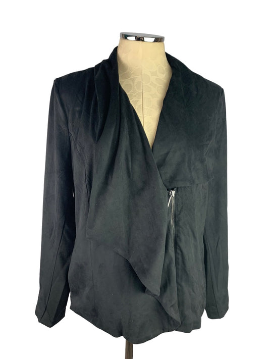 16 H by Halston Black Faux Suede Microfiber Women's Zip Lined Jacket