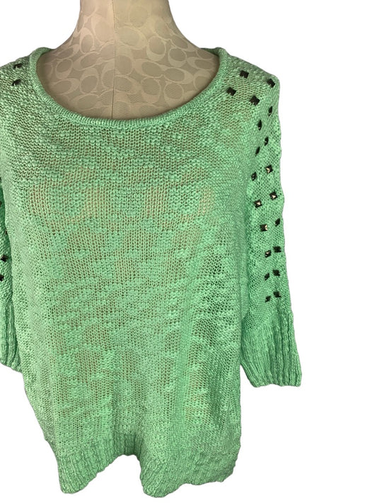 Small Twiggy London Light Green New Women's Loose Knit Sweater Embellished