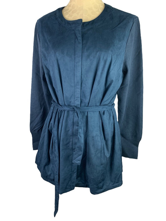 16 H by Halston Women's Navy Blue Faux Suede Belted Dress Knit Sleeves Lined