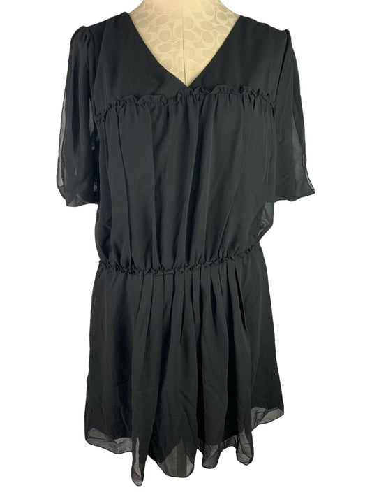 Medium GILI Women's Black Blouson V-Neck Dress Sheer Short Sleeve