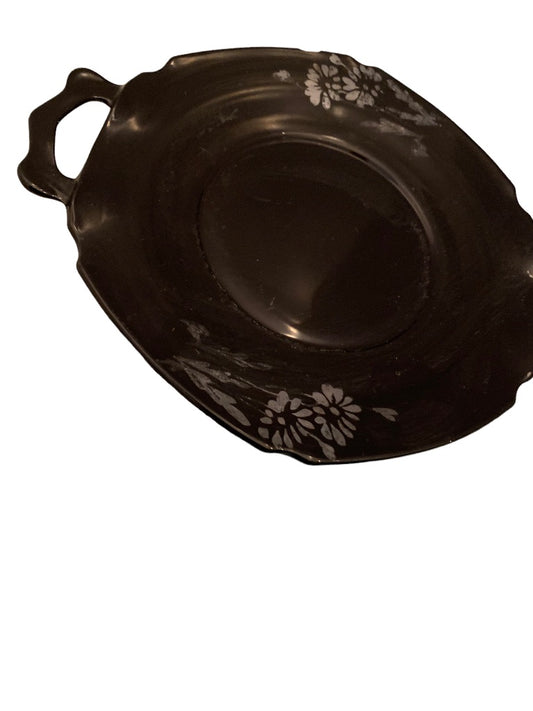 Black Amethyst Depression Glass Double Handled Sterling Floral Plate