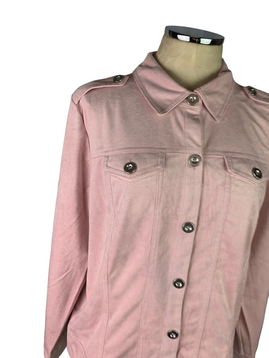Large Joan Rivers Faux Suede Pink Jacket Button Up Pockets Women's