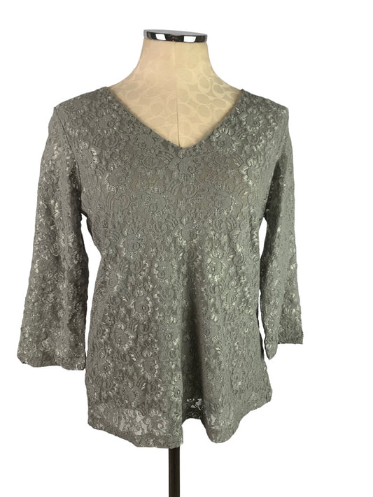 Small Motto Women's Gray Lace V-Neck Lined Pullover Top New