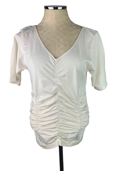 1X Legacy Ivory Women's Activewear Ruched V-Neck Shirt Short Sleeve