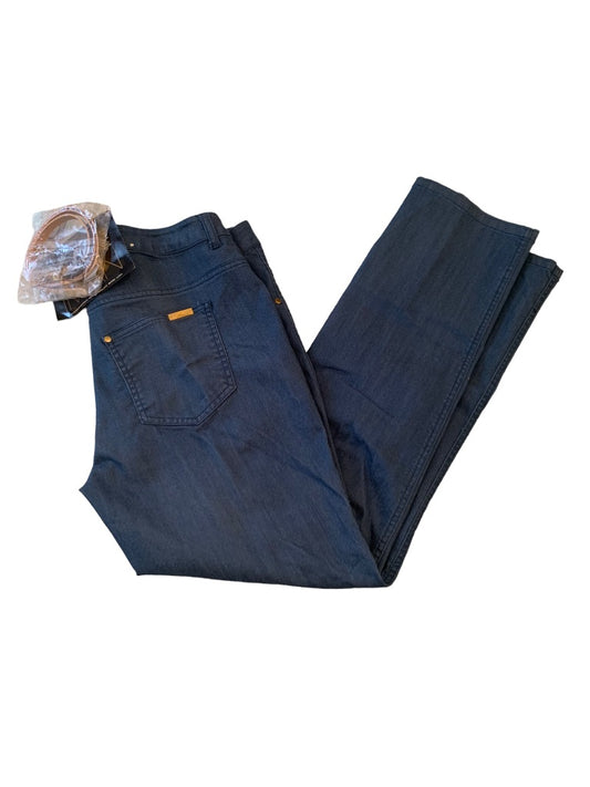 Large Iman Global Chic Women's Stretch Jeans New Blue Patent Belt