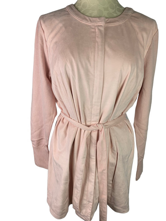 14 H by Halston Women's Pink Faux Suede Belted Dress Knit Sleeves Lined