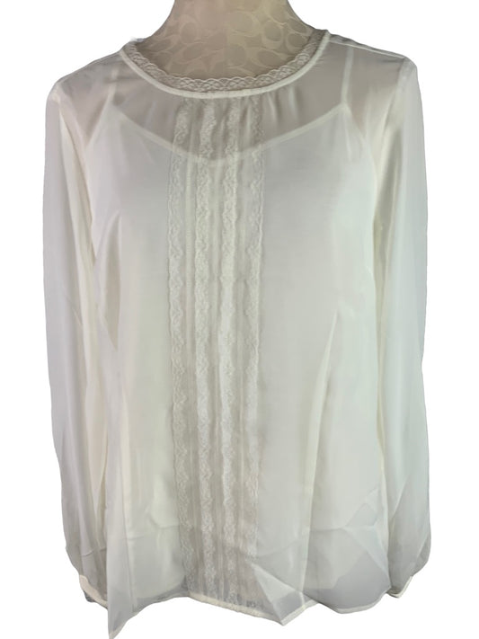 Medium Pamela Dennis Sheer Ivory Blouse and Cami Lace Trim