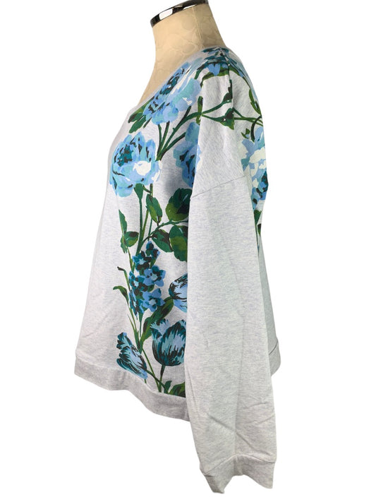Large Isaac Mizrahi Live! Women's Gray Floral Sweatshirt Wide Neck